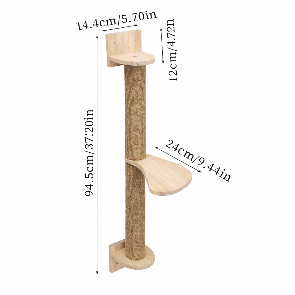Wall-mounted and beautifully minimal, this piece blends architectural wood with chunky natural rope, creating a clean, elevated feature that feels intentional — not pet-store.